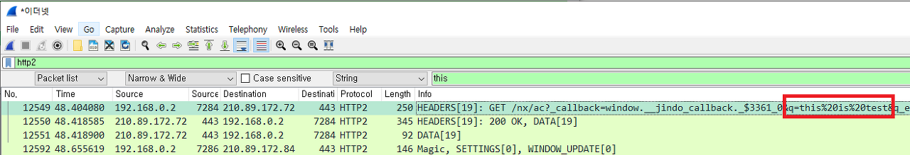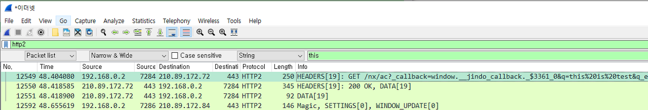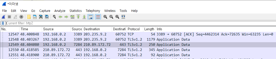 그 이후 Wireshark의 강력한 기능인 Follow TCP Stream을 클릭해보면 다음과 같이