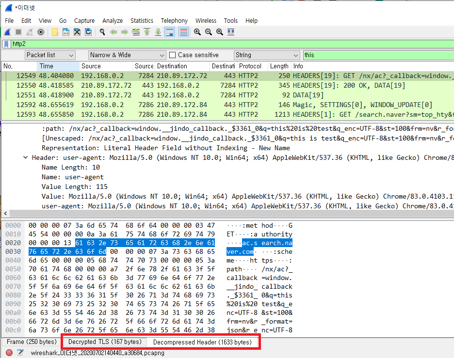 첫번째 메시지의 frame이 어디까지 인지 확인하여 보니 frame 번호가 88번이라는 것을 확인하였습니다.