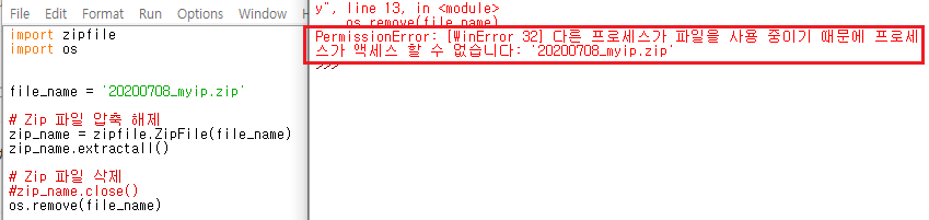 [WinError 32] 다른 프로세스가 파일을 사용 중이기 때문에 프로세스가 액세스 할 수 없습니다. (9) | 2022.03.14 |