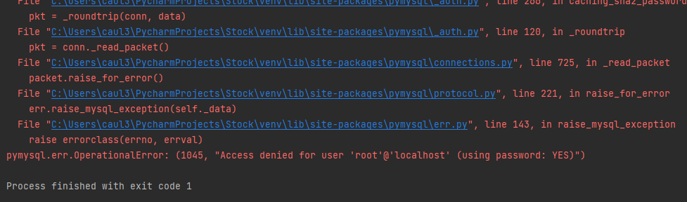 [Python] pymysql.err.OperationalError: (1045, "Access denied for user 'root'@'localhost' (using password: YES)") (8) | 2022.03.15 |