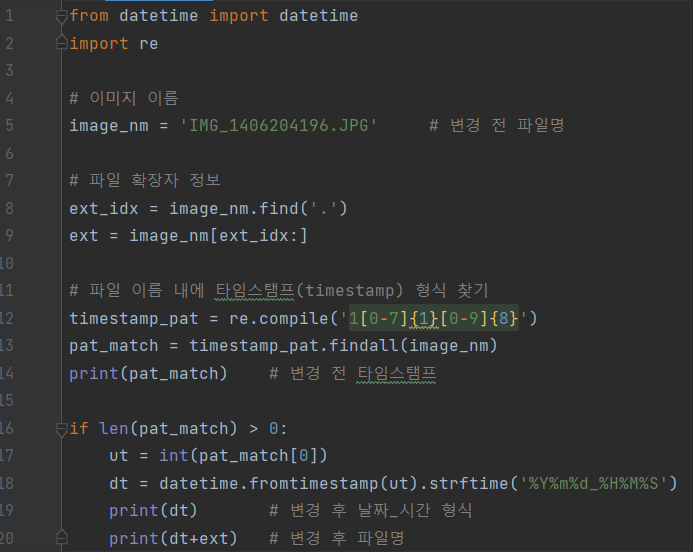 [Python] 정규표현식(Regex)으로 타임스탬프 형식의 파일 이름 변경하기 (8) | 2022.03.26 |